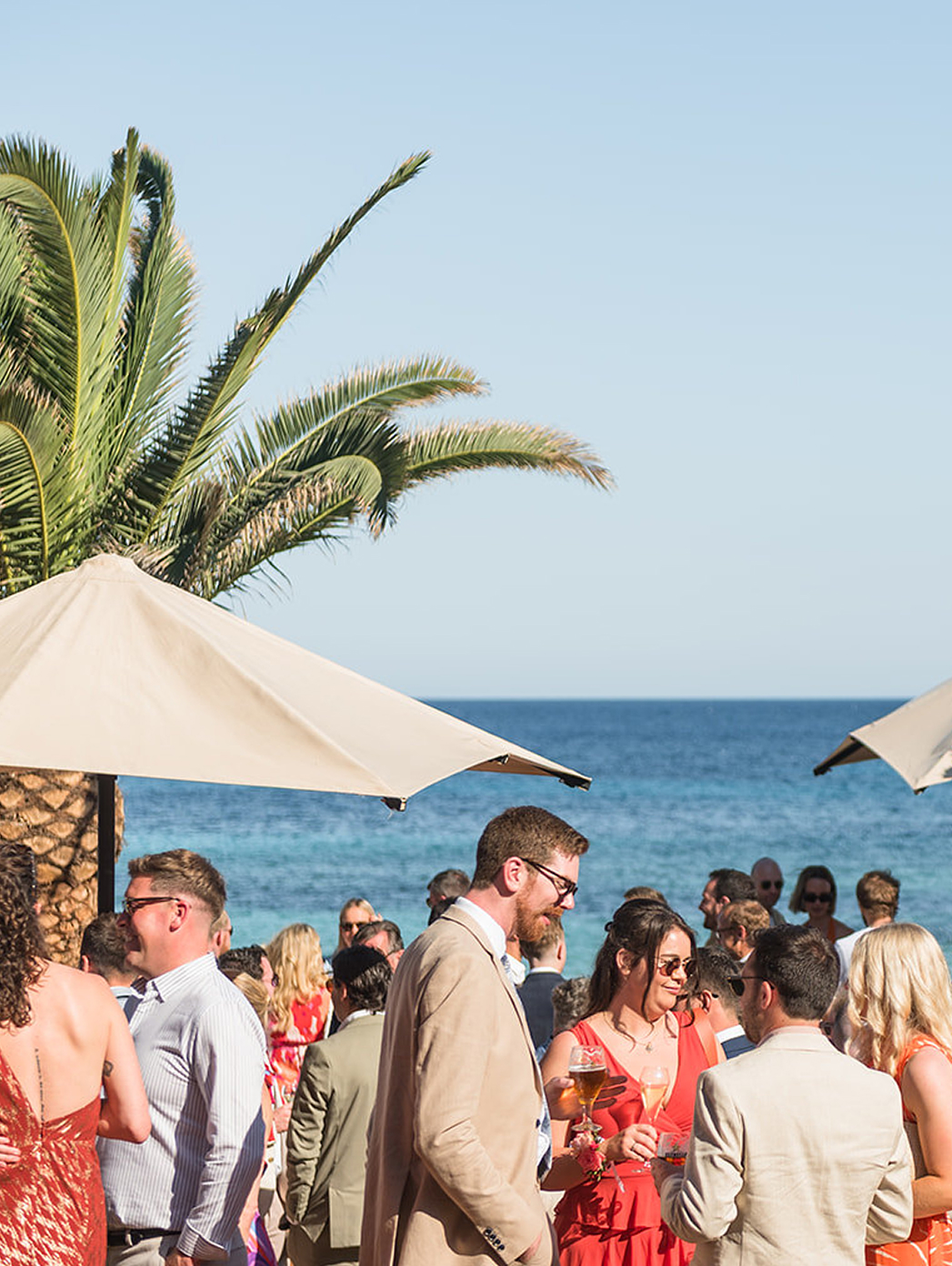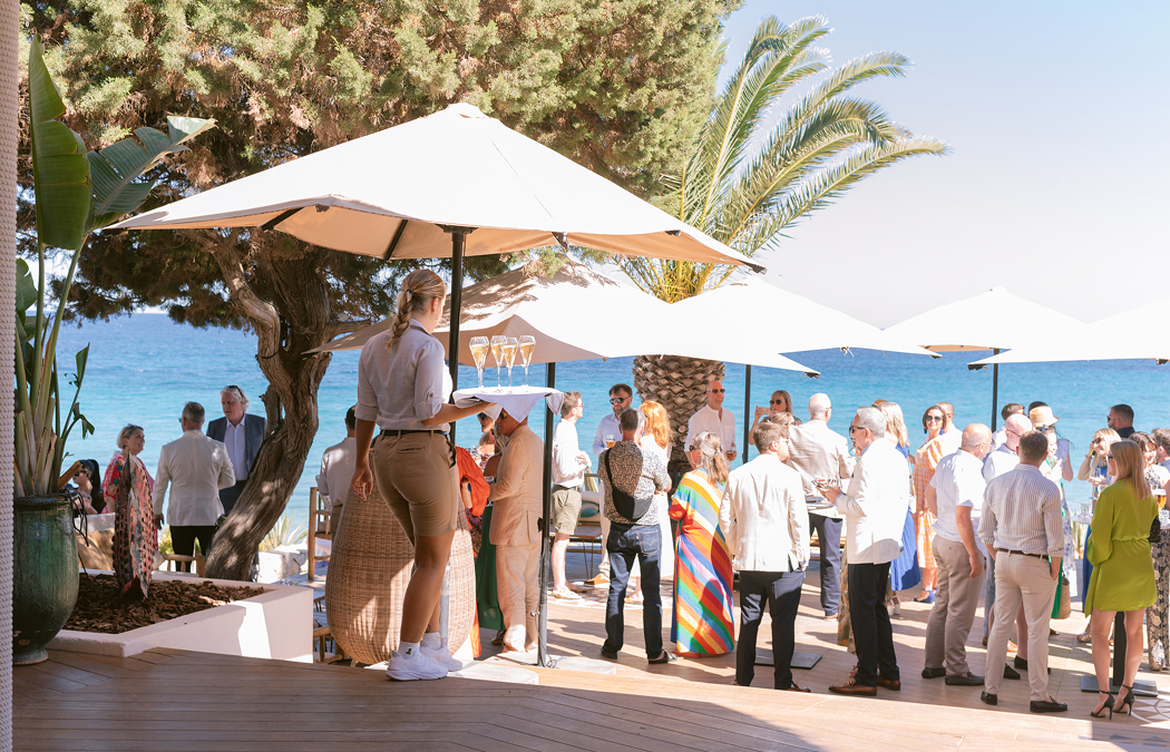 Los invitados llegan y disfrutan de sus primeras copas con vistas al mar.